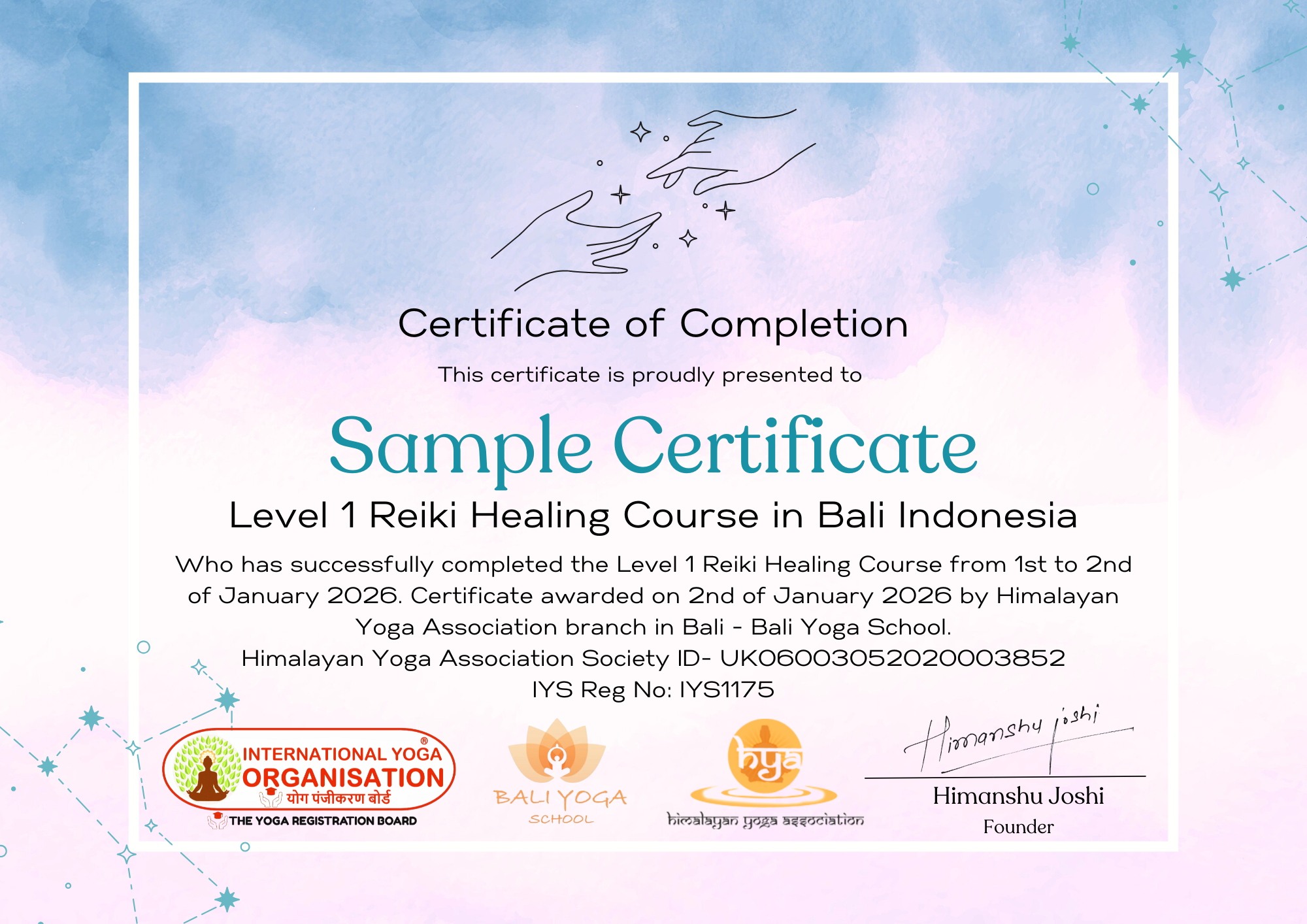 - Reiki Healing Level 1 Certification upon the successful completion of the course.