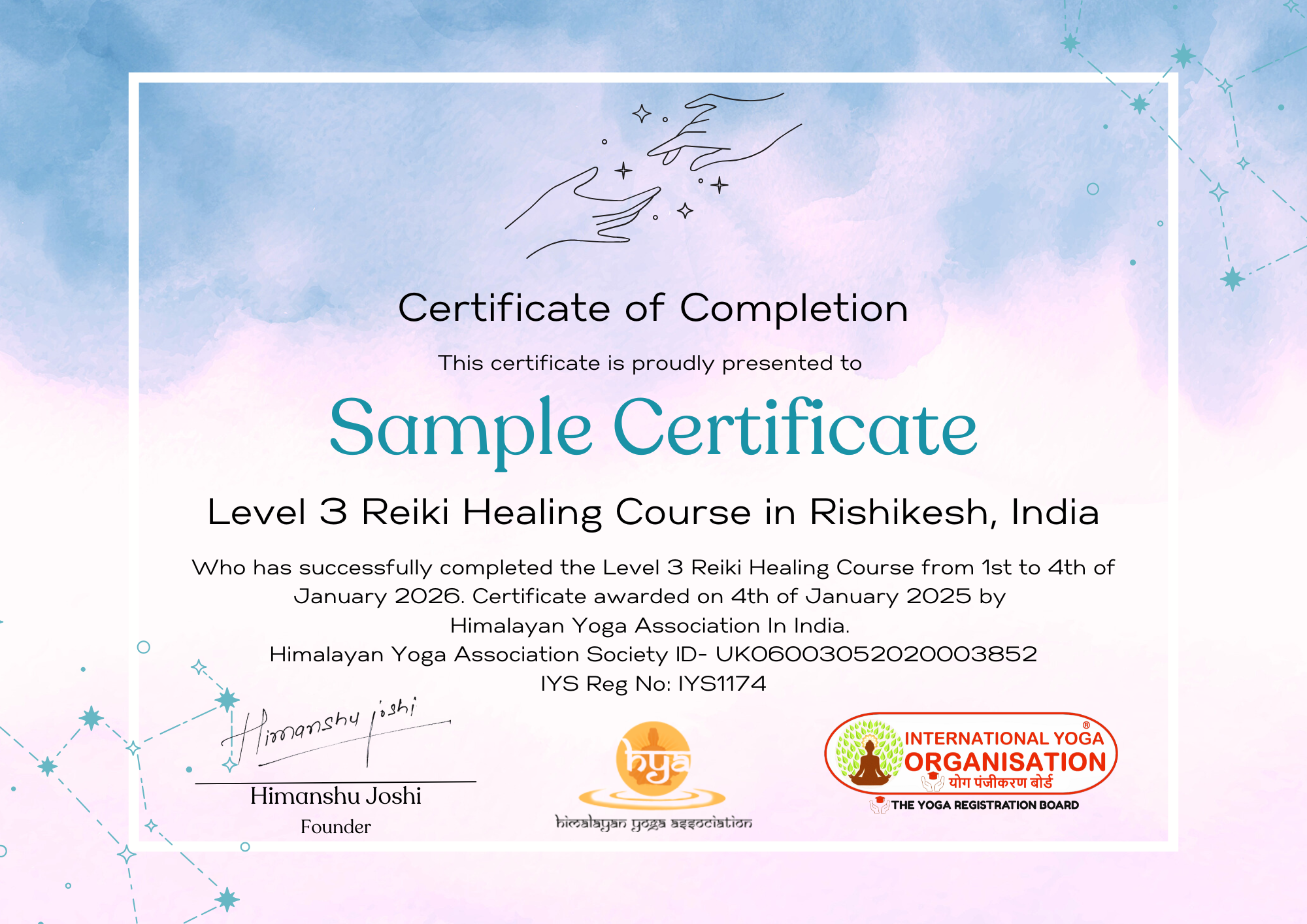 Upon completing your Sound Healing Course /Reiki Healing Course /Ayurveda Course with Himalayan Yoga Association, you will receive an internationally recognized certificate