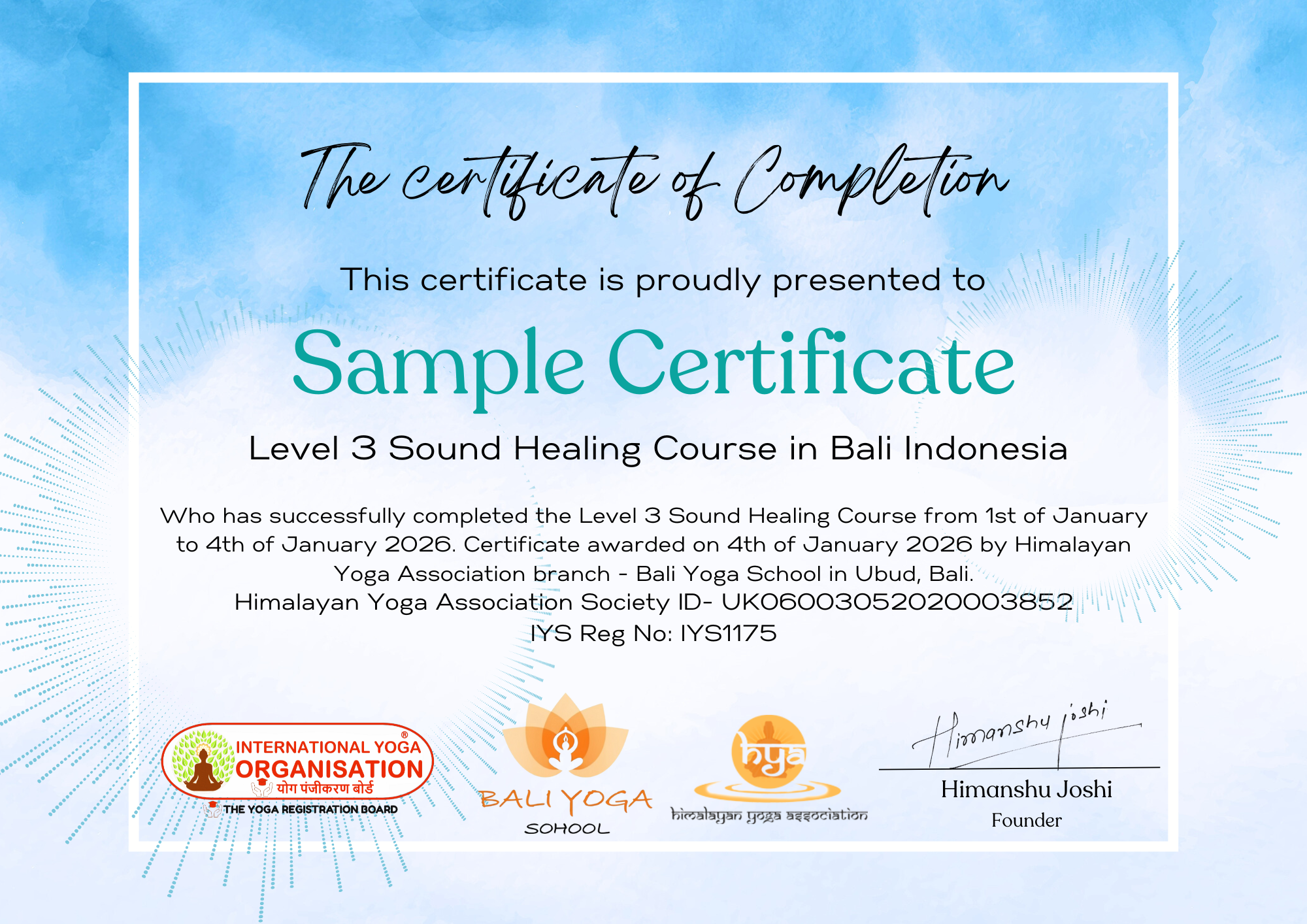 - This course is certified by International Yoga Organisation & Himalayan Yoga Association Yoga Society.